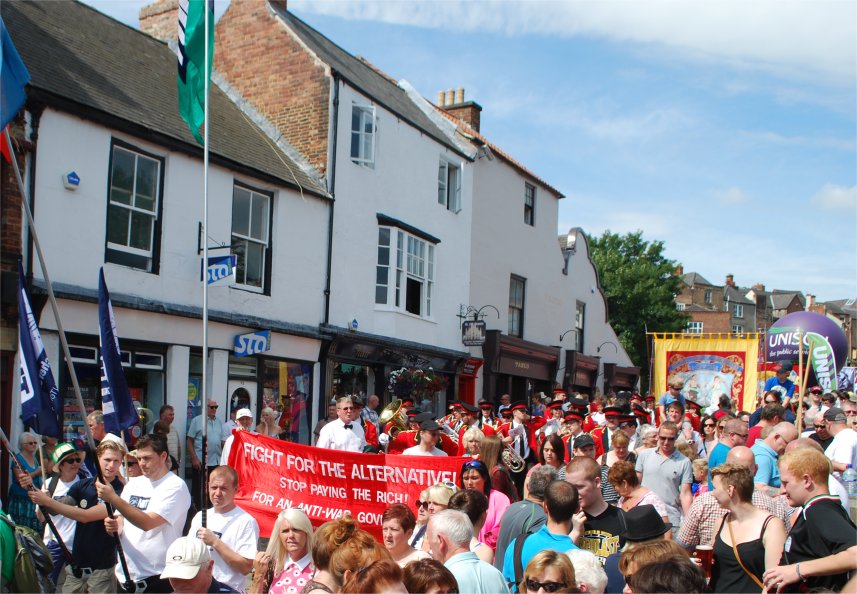We congratulate the Durham Miners Association (DMA) that it has kept the Durham Miners Gala and Big Meeting going for 21 years since the closure of all the deep mines in the north east, and we salute the determination of the Gala's organisers and the support of all the organised workers who still recognise the significance of the miners and their being at the forefront. All recognise that part of the neo-liberal strategy brought in by Thatcher in the 1980s was to smash the vision and independent politics of the class, and she chose the miners, along with print workers and others, as a target – so that the closure of the mines was a landmark in the wrecking of the economy and the manufacturing base, which neo-liberalism has now developed into “austerity” and is aiming its attack at wrecking the public sector and destroying the welfare system safety net. The working people, the vulnerable and public services are the target, while the rich are made the beneficiaries.