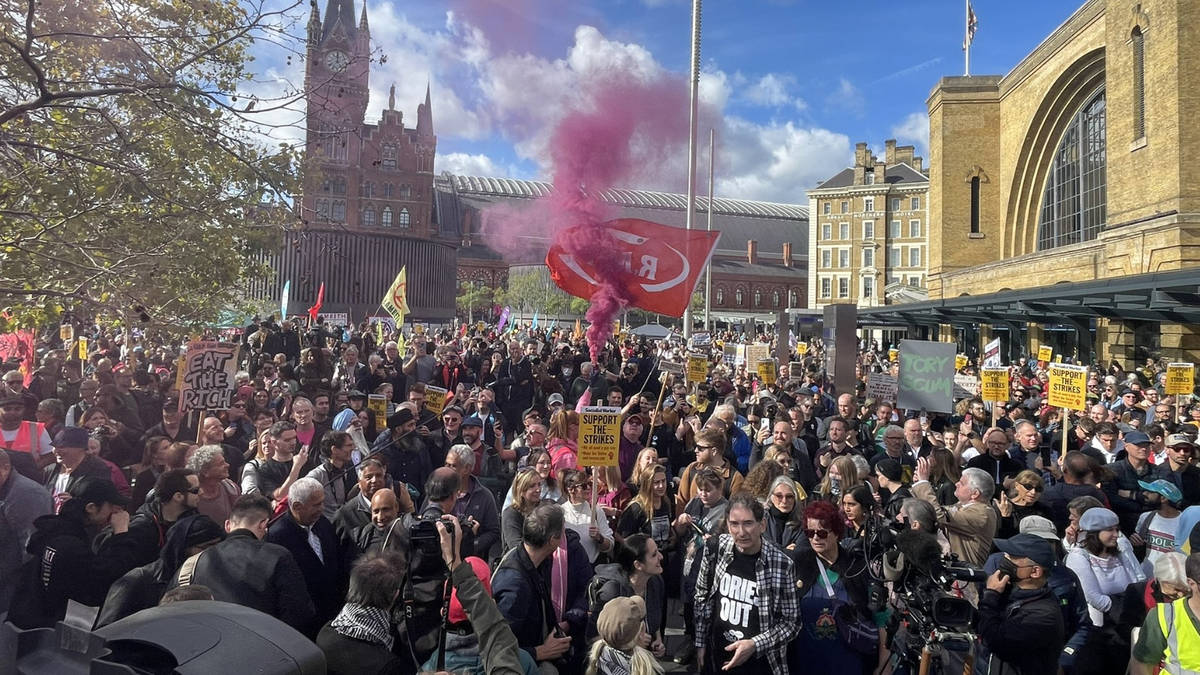In London, several thousand people gathered at the Enough is Enough protest outside King's Cross station speech to hear speeches from union leaders, MPs, strikers and celebrities. The atmosphere was one of collective rage and a determination to take a productive stand, mobilising the working class to fight for and defend its interests.