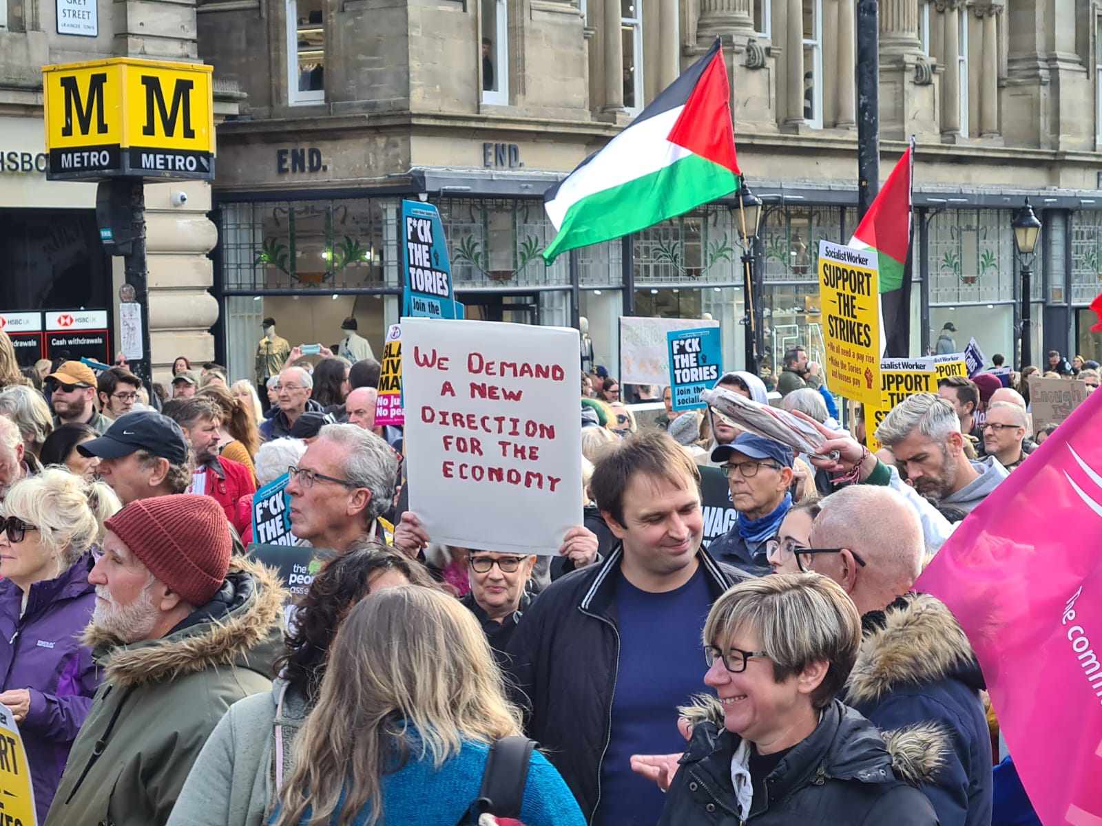 In Nottingham, thousands marched from Nottingham Station to Old Market Square. Representatives from Unite the Union, RMT, CWU, West Bridgford Labour Party, University of Nottingham, Keep Our NHS Public were among many others joining the day of action.