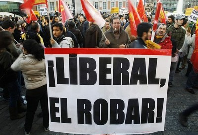 banner reads: "Liberal, robbery!"