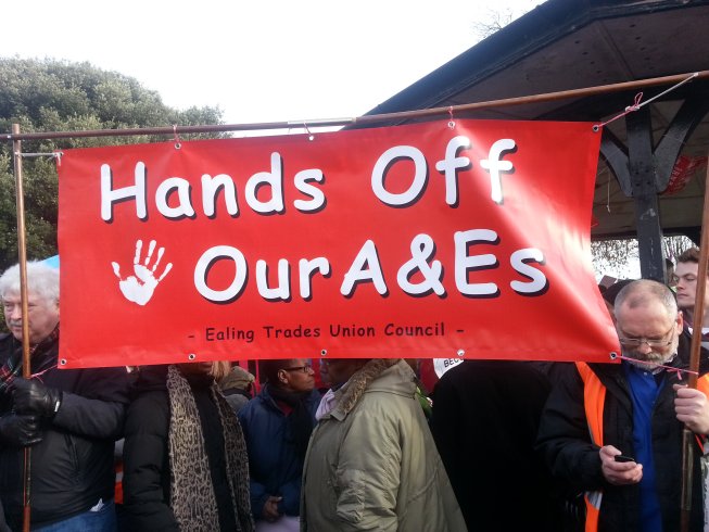 The logic being applied is not what will best serve the health needs of the people, but whether a nearby Healthcare Trust should be rescued financially by re-locating services there and cutting staff. Marcher after marcher, as well as speaker after speaker at the rally, had a story about how the Lewisham A&E had saved lives which would had been lost under the proposed arrangement, or had guaranteed a safe birth which would have been put at risk should the proposal go through.
